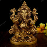 - These handcrafted antique idols of Ganesha and Laxmi are made of 100% brass.