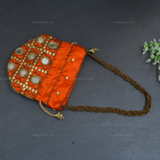 Trendy and Stylish this gorgeous potli bag to your favorite accessories and let it complement your individual style every single day! This is traditional and party wear Potli bag which helps you flout like a queen. The stunning gota patti work on thi potli is a spectacular embroidery involving fabric ornamentation involves applique work with small cut pieces of gota (Golden lace) perfect for everyday as well party use.